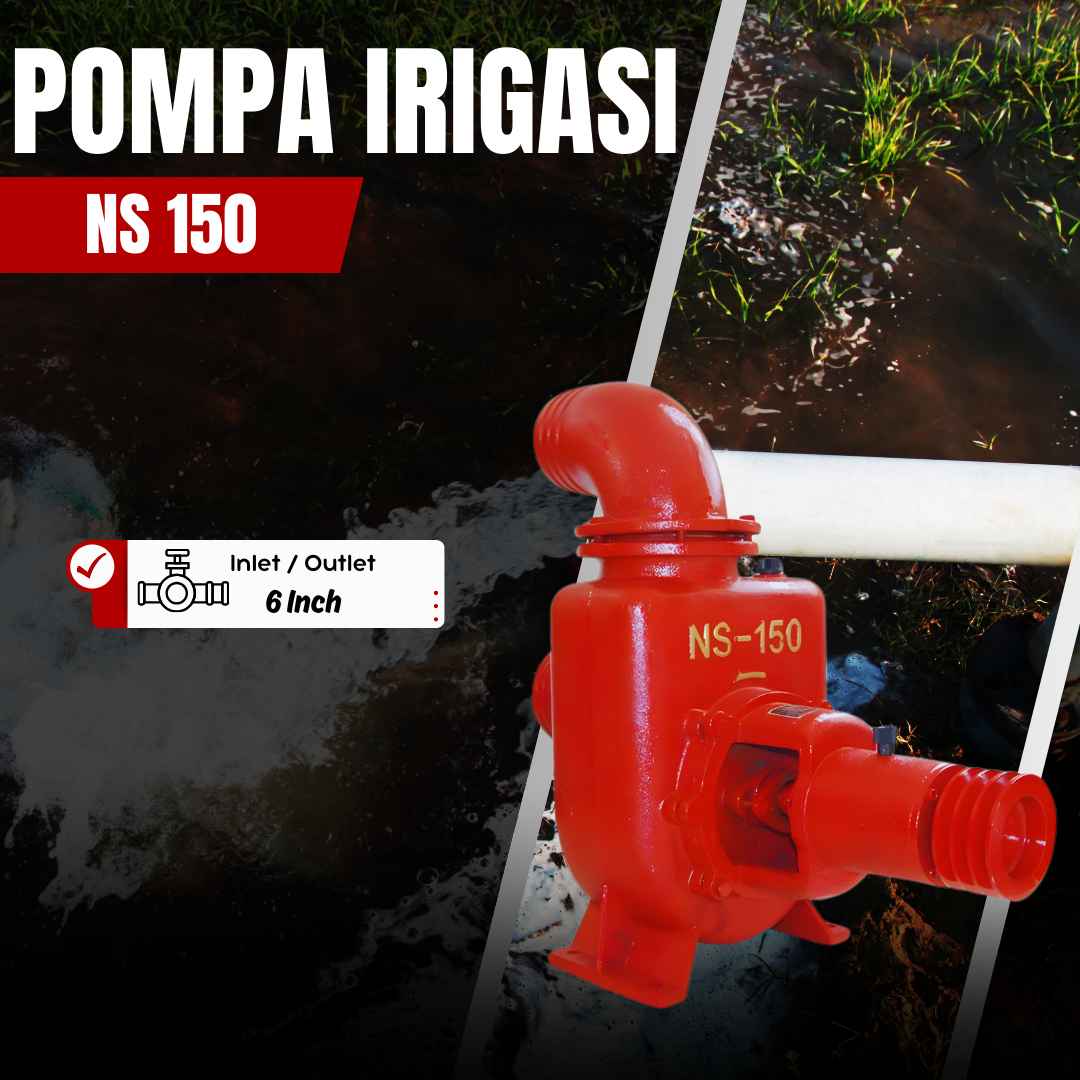 Pompa Irigasi NS 150 merupakan jenis pompa air industri / pertanian self-priming yang sangat cocok untuk pemompaan air bersih, air tambak, atau air yang sedikit kotor / berpasir. Pompa Irigasi merek NS juga memiliki nama lain Pompa Centrifugal untuk pertanian maupun industri kecil UMKM.